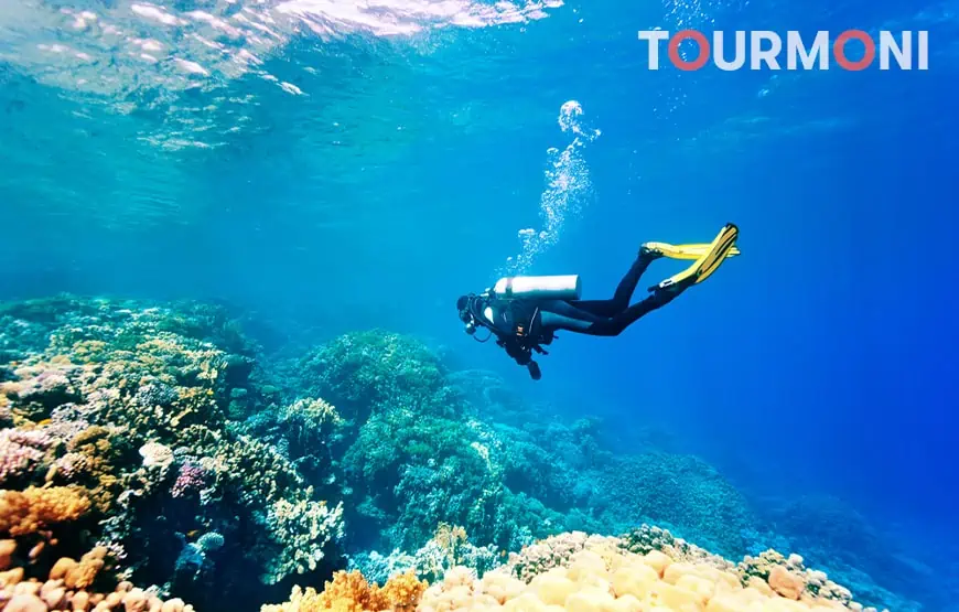 На борту мы позаботимся о каждой детали. Мы используем только первоклассное снаряжение, поэтому вы можете быть уверены в качестве и безопасности. Первое погружение — это скорее тренировочная сессия на глубине около 5 метров, чтобы вы привыкли к экипировке и ощущениям под водой. Опытные гиды проведут для вас небольшую экскурсию, где вы почувствуете полное единение со стихией, следуя за стайками разноцветных рыб через коралловые рифы.
